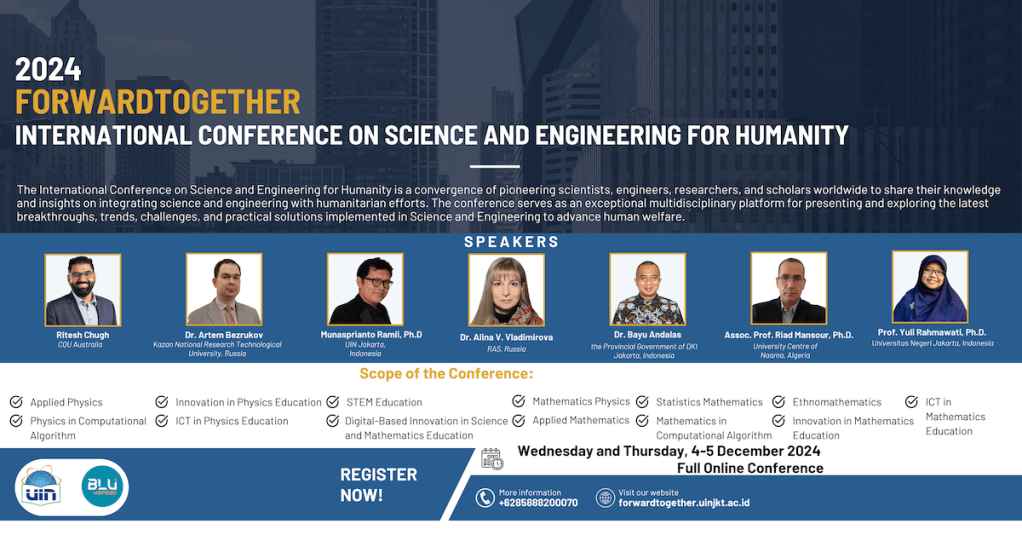 UIN Syarif Hidayatullah Jakarta, the Center for the Study of Religion, Environment and Climate Change, Luhur Alam Sejati Foundation and Dharmaila Center—Research, Education & Impact have joined forces to organise a series of high-impact conferences, including ForwardTogether: International Conference on Science and Engineering for Humanity and GreenThink: International Conference in Innovative Interdisciplinary Science for Inclusive and Sustainable Future. This dynamic collaboration brings together global experts to share cutting-edge research and practical solutions, driving academic, scientific, and social transformation for a more inclusive and sustainable future.